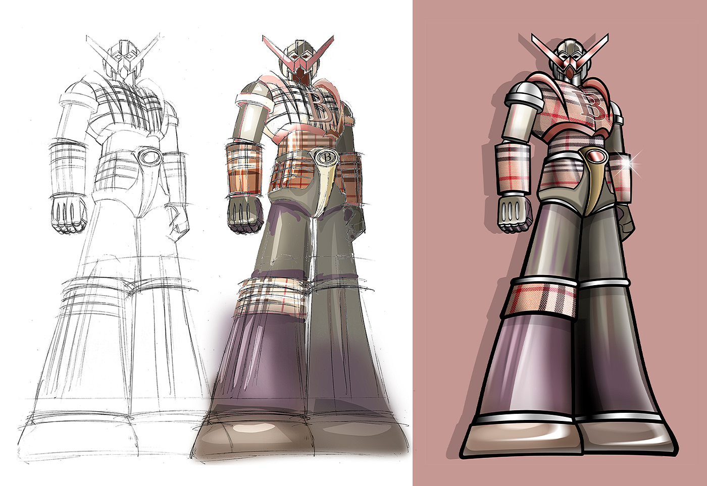 The second chapter looks ahead, while keeping the same critical spirit. Back to the Future features fully-branded giant robots, inspired by the world of Japanese anime from the ’70s and ’80s. It’s a playful take on brand obsession, surviving even the collapse of fashion itself. The apocalypse is postponed—but still very well dressed.